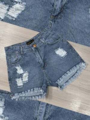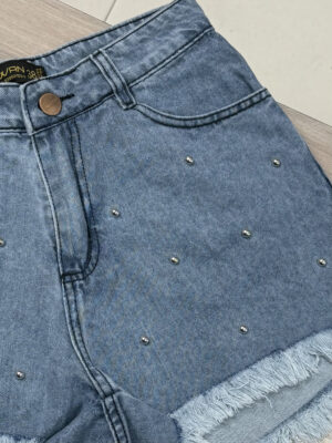Artículo 078T || Short Azul Flecos con Tachas